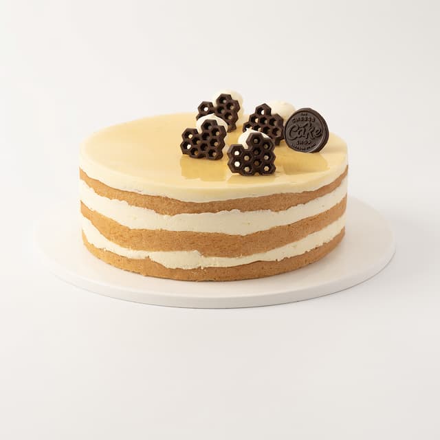 A vanilla sponge layered and coated with honey cream, topped with honey glaze and Belgian chocolates.