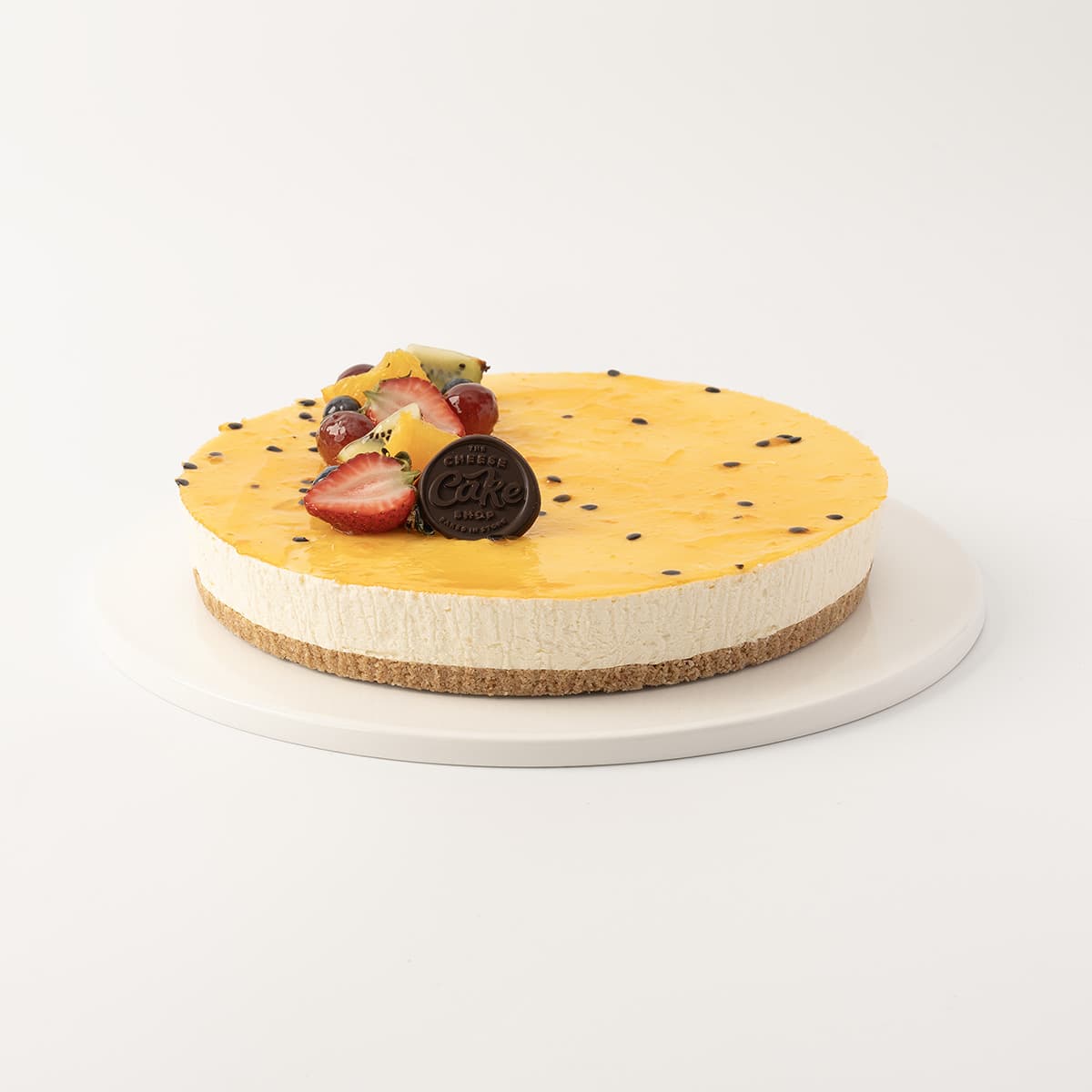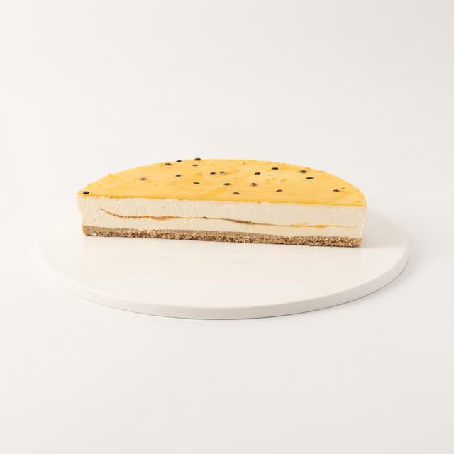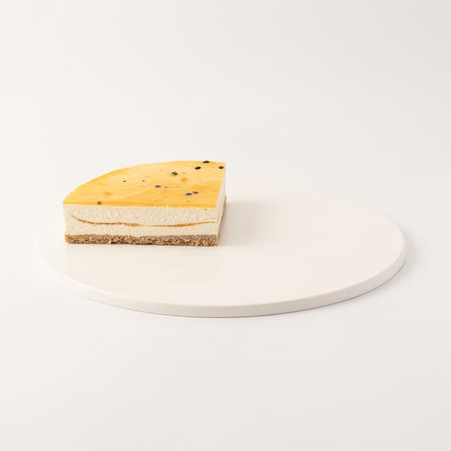 Our creamy cheesecake centered with a passionfruit filling. Topped with a passionfruit glaze and seasonal fruits.